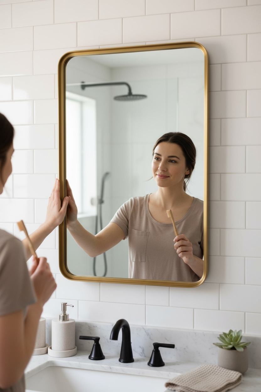 * Material: Saint Gobain/ Modi Guard 5mm Mirror,Brass PVD frame with gloss