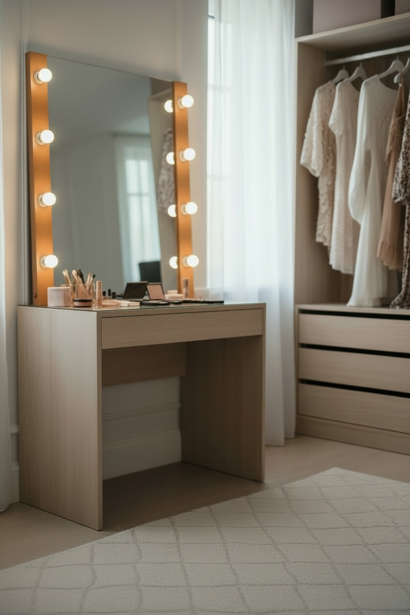 This Hollywood Makeup Mirror is a premium quality LED light mirror. It can be used to decorate your dressing room, bathroom or powder Loo area. This mirror has a storage drawer & LED bulbs and inbuilt switch to turn on it without moving to the switch board. Since the mirror has an inbuilt light it helps to find out minute detailing of your face. The mirror has been manufactured by our well skilled team who assures the best quality of every mirror.