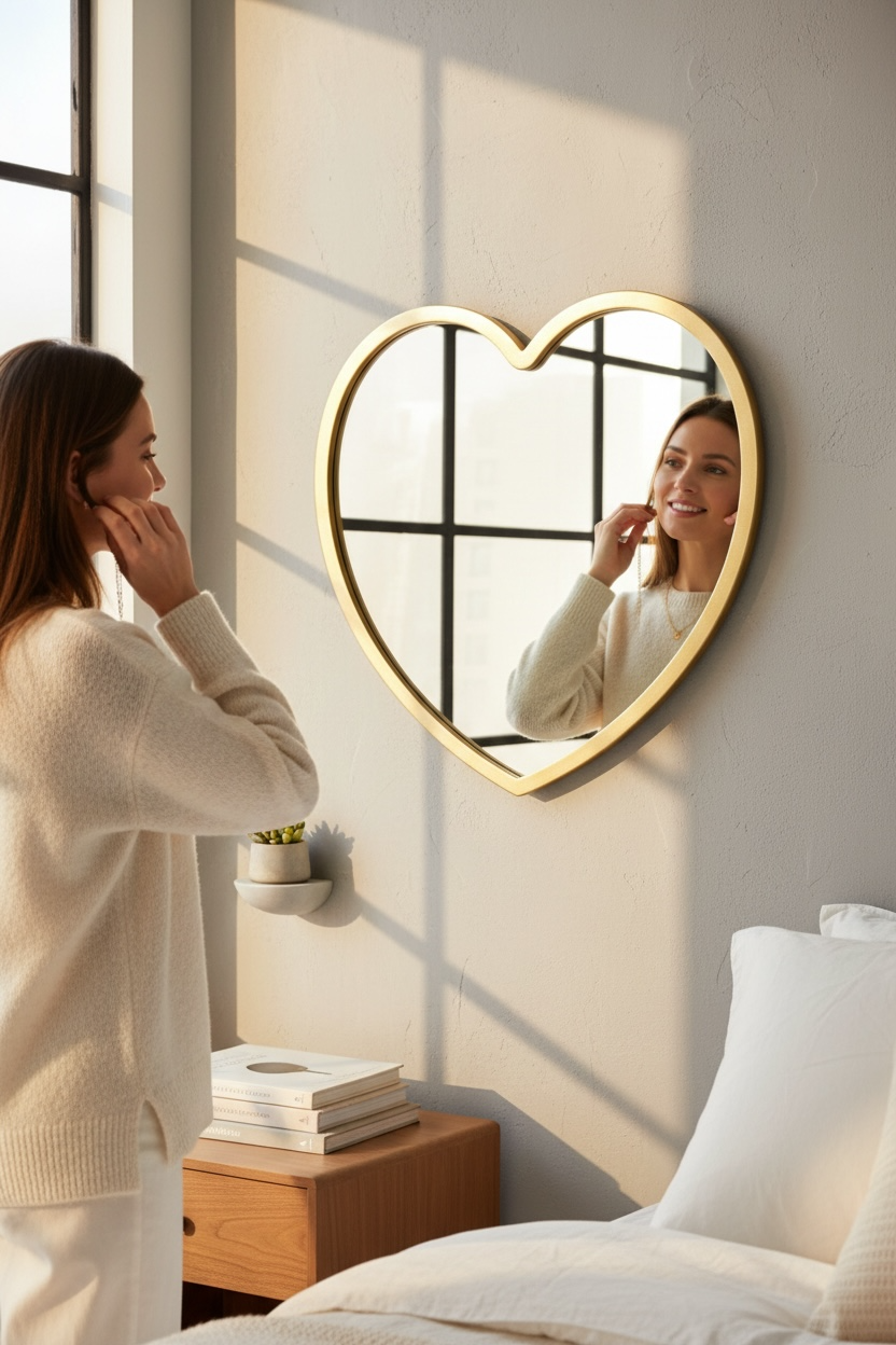 This dull gold heart shape mirror gives a feel of girlish test so this is best for your daughter’s room,this mirror can also be used in bathroom, powder Loo, Dresser, drawing room, bedroom etc.The mirror has been manufactured by our well skilled team who assures the best quality of every mirror product.