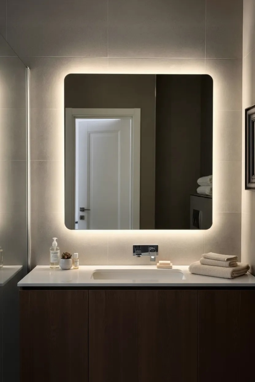 This premium quality LED mirror can be used to decorate your bathroom or powder Loo area. This mirror has an inbuilt white LED light and inbuilt switch to turn on/off it without moving to the switch board. Since the mirror has an inbuilt light it helps to find out minute detailing of your face. The mirror has been manufactured by our well skilled team who assures the best quality of every mirror.