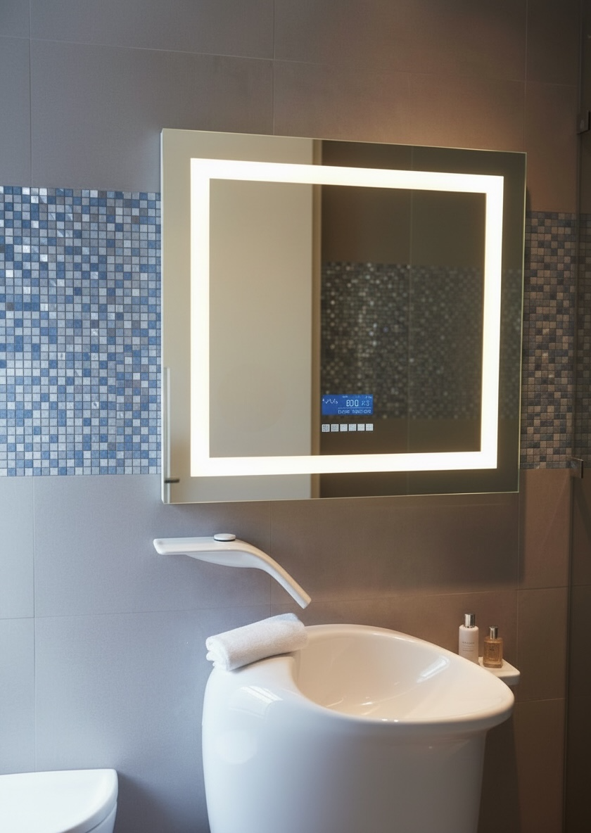 This premium quality Bluetooth LED mirror can be used to decorate your bathroom or powder Loo area. This mirror has an inbuilt white LED light and inbuilt switch to turn on/off it without moving to the switch board. Since the mirror has an inbuilt light it helps to find out minute detailing of your face. The mirror has been manufactured by our well skilled team who assures the best quality of every mirror.